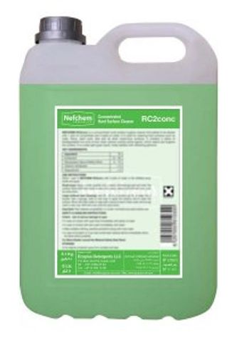 NEFCHEM RC2conc is a concentrated multi-surface hygiene cleaner formulated to be diluted with 1 part of concentrate and 3 parts of water. It is used for cleaning hard surfaces such as walls, floors, paintwork, tiles and all other impervious surfaces. It contains a blend of biodegradable non-ionic & twin chain cationic surface active agents, which cleans and hygiene the surface. It is a clear light green liquid, mildly alkaline with refreshing perfume