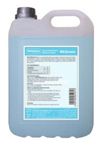 NEFCHEM RC3conc is a concentrated glass and hygienic telephone cleaner formulated to be diluted with water. It is used for cleaning of hard surfaces such as glass, mirror and telephone tiles. It contains a blend of biodegradable non - ionic, cationic biguanide, which cleans and hygienes the surface and other infirm sticking soils.