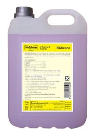 NEFCHEM RC5conc is a concentrated air freshener to be diluted with 1 part of concentrate and 3 parts of water. It deodorizes the room and removes the unpleasant odor to smell fresh and pleasant. It contains a special ingredient to remove the odoriferous materials from the air.